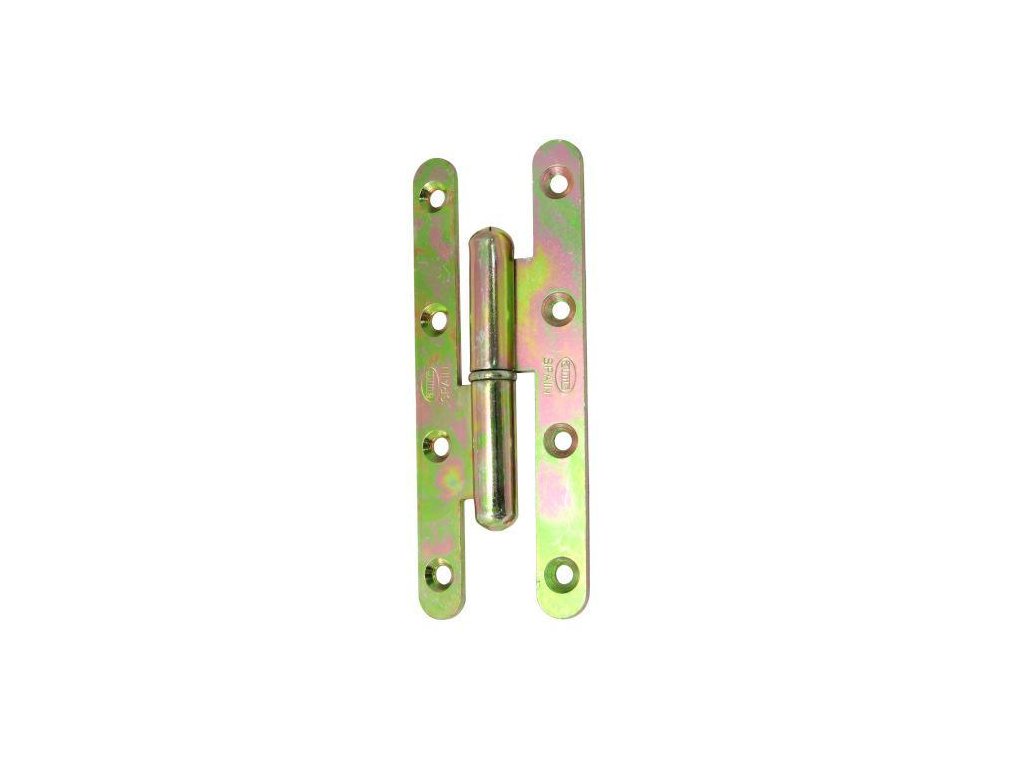 Závěs dveřní model 505 španělské firmy AMIG - Rozměry: 140x55x3mm - Materiál: ocel - Povrchová úprava: žlutý pozink - Podle španělské nomenklatury Závěs Levý Viz vysvětlení stran závěsů V polské nomenklatuře závěs PRAVÝ Viz výkres technickýDoplňkové parametry