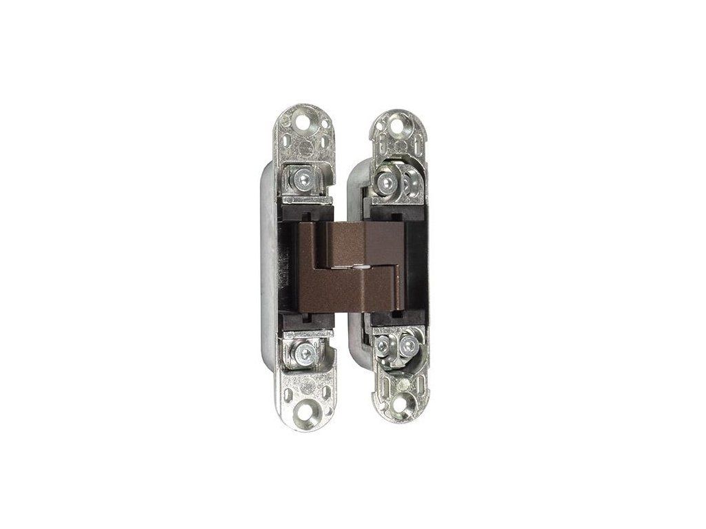 Univerzální skrytý zapuštěný dveřní pant, s regulací ve všech směrech model ECLIPSE 3.0 - Výška pantu: 114,8mm - Šířka křídel: 22,8mm - Hloubka rámové části: 20,5mm - Hloubka části křídlowej: 27mm - Materiál: zamak - Barva: bronzový Eclipse 3.0 je regulovatelný ve 3 směrech i pozwala na otwarcie křídla na 180 stupňů. Nosnost: 40kg na 2 pantach, 60kg na 3 pantach. Może být stosowny z samozavíračem. Do zastosowania w dveřích bezfalcowych z falcem lub bez. Krytky dedykowane do pantů dostupné w oddělené sprzedaży. Viz technický výkresDoplňkové parametry