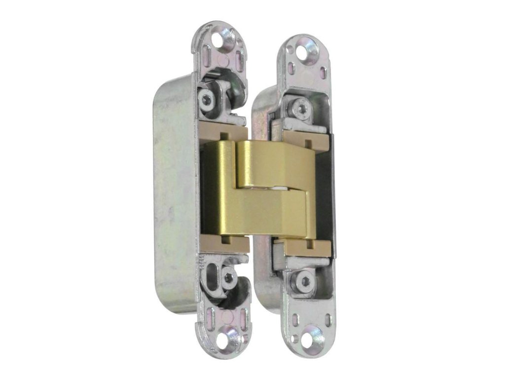 Univerzální skrytý závěs dveřní zapuštěný, z regulací ve všech směrech model ECLIPSE 3.0 - Výška závěsu: 114,8mm - Šířka křídel: 22,8mm - Hloubka části rámové: 20,5mm - Hloubka části křídlové: 27mm - Materiál: zamak - Barva: mosaz mat Eclipse 3.0 je regulovaný v 3 směrech a umožňuje na otevření křídla na 180 stupňů. Nosnost: 40kg na 2 závěsech, 60kg na 3 závěsech. Může být vhodný z samozavíračem. Pro použití v dveřích bez falce z falcem nebo bez. Krytky určené pro závěsů dostupné v samostatném prodeje. Viz výkres technickýDoplňkové parametry