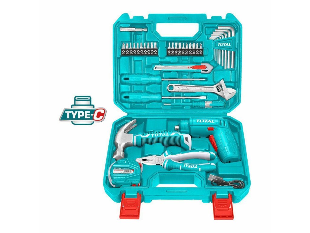Zestaw narzędzi 38szt. THKTHP10386 Walizka narzędziowa 38-częściowa zawiera: - 1 x 4 V wkrętarka akumulatorowa litowo-jonowa z ładowarką USB. Prędkość bez obciążenia 240 obr./min, do końcówek wtykowych 1/4 cala - 1 uchwyt magnetyczny. - 4 końcówki płaskie: SL3 - SL4 - SL5 - SL6 - 4 końcówki krzyżakowe: PH0 - PH1 - PH2 - PH3 - 4 końcówki Pozidrive: PZ0 - PZ1 - PZ2 - PZ3 - 4 końcówki Torx: T10 - T15 - T20 - T30 - 4 końcówki imbusowe: H3 - H4 - H5 - H6 - 8 kluczy imbusowych 1,5 - 2 - 2,5 - 3 - 4 - 5 - 5,5 - 6 - 1 śrubokręt płaski SL5,5 x 100 mm - 1 śrubokręt krzyżakowy PH1 x 100 mm - 1 x szczypce uniwersalne 160 mm - 1 x klucz nastawny 160 mm - 1 x próbnik (100-500 V AC) - 1 x mini młotek - 1 x miarka krawiecka 3 m - 1 x nóż uniwersalny Walizka narzędziowa, to kompletny zestaw zawierający różnorodne niezbędne narzędzia do wkręcania i montażu. Wykonana z wysokiej jakości materiałów walizka zaprojektowana tak, aby wytrzymać intensywne i długotrwałe użytkowanie.Doplňkové parametry
